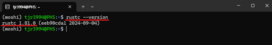 정상적으로 설치가 완료되었다면 아래와 같이 rust 버전이 출력됩니다.
