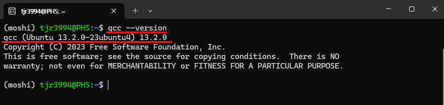 이 명령어는 GCC, G++ 등의 필수 컴파일러 도구들을 설치합니다. 설치 후 아래 명령어를 통해 정상적으로 설치되었는지 확인할 수 있습니다.