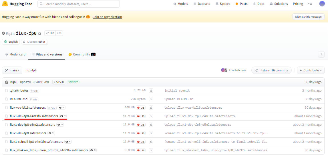 - flux-1-dev-fp8 모델 허깅페이스 : https://huggingface.co/Kijai/flux-fp8/tree/main