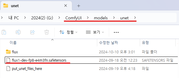 (ComfyUI 폴더) → (models 폴더) → (unet 폴더)