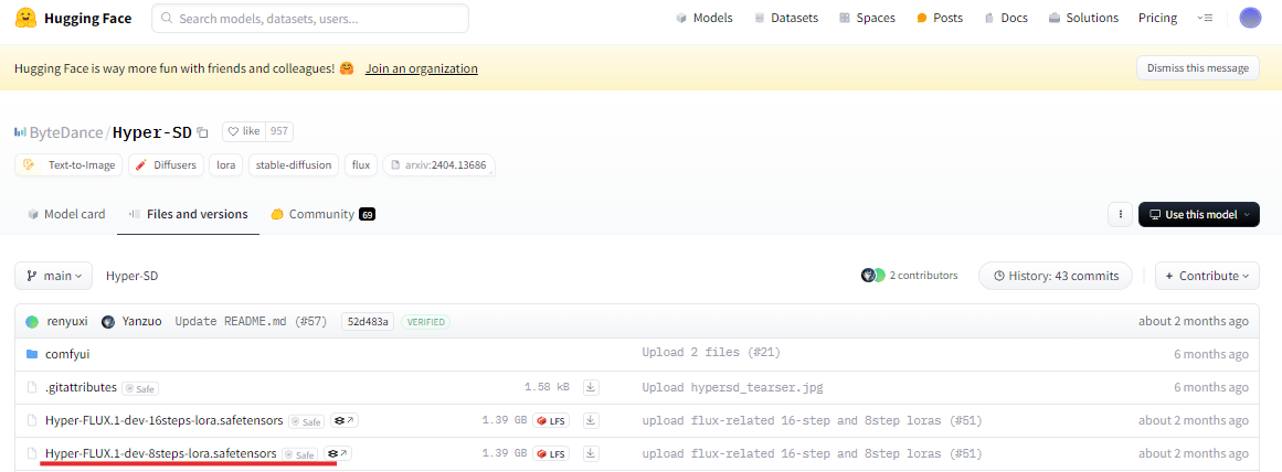 - Hyper flux 8tep lora 모델 허깅페이스 : https://huggingface.co/ByteDance/Hyper-SD/tree/main
