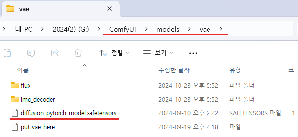 (ComfyUI 폴더) → (models 폴더) → (vae 폴더)