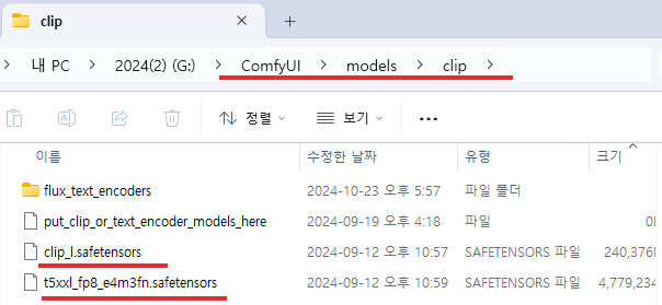 (ComfyUI 폴더) → (models 폴더) → (clip 폴더)