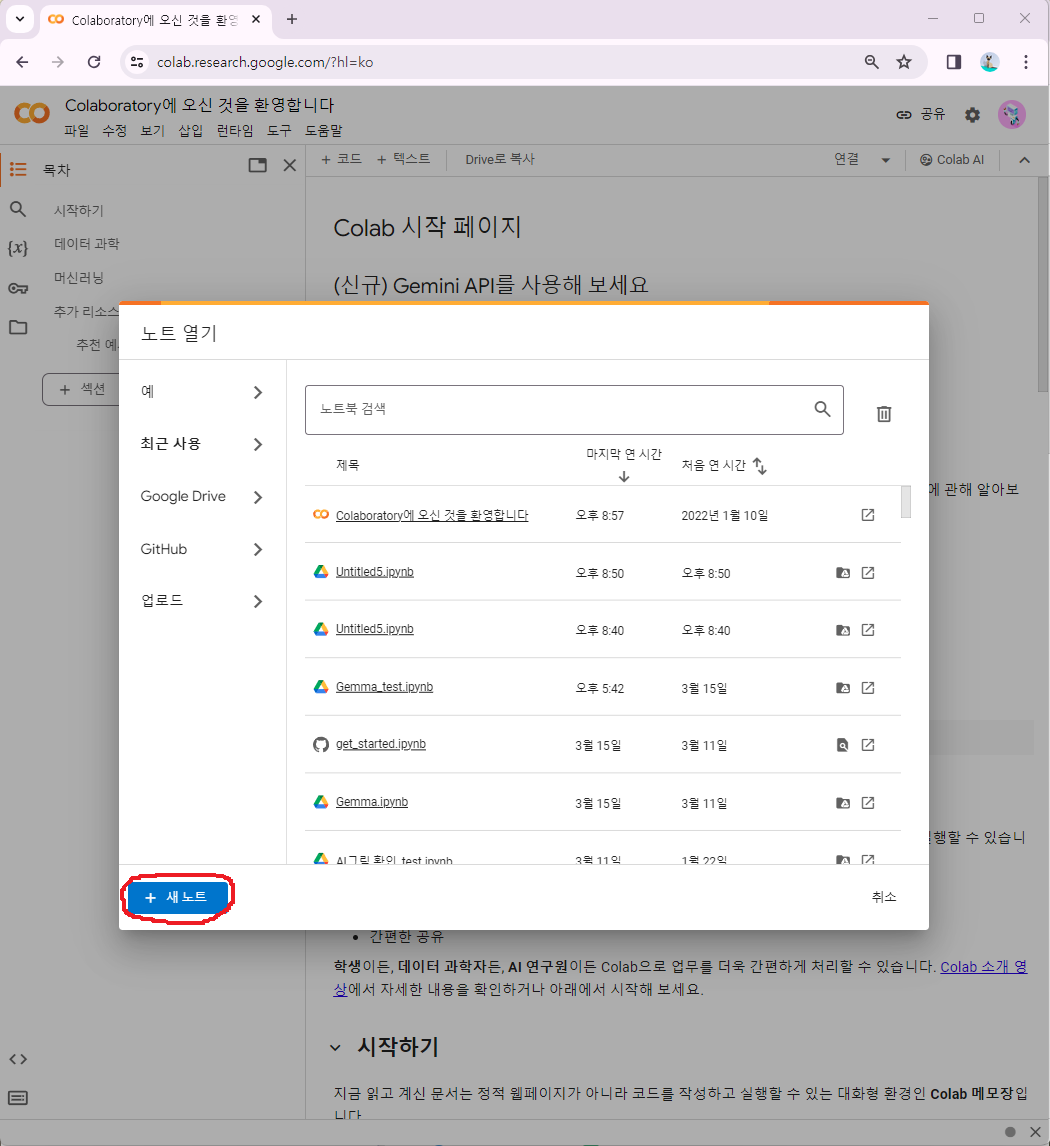 1) 구글 코랩에 접속 (https://colab.research.google.com/)