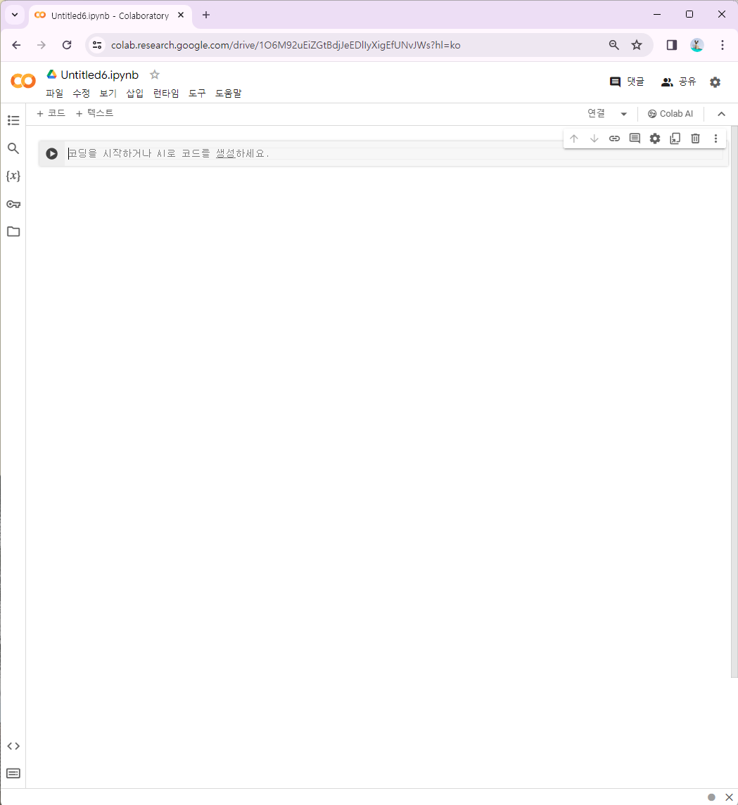 - 구글 코랩은 로그인해야 사용 가능합니다.