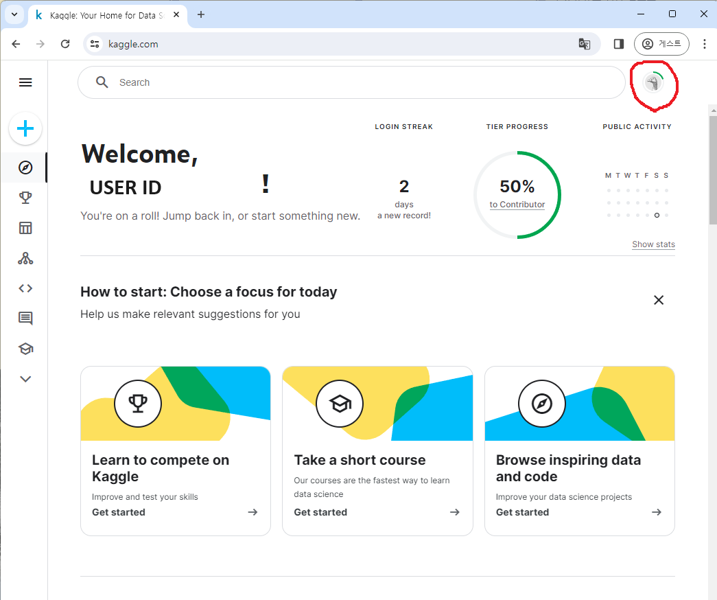 1. Kaggle ID (사이트 주소 : https://www.kaggle.com/)